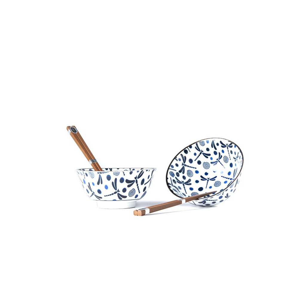 Setul contine 2 boluri din ceramica, pictate manual cu 2 perechi de betisoare din lemn.
