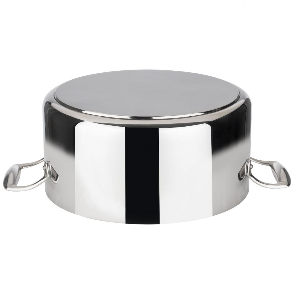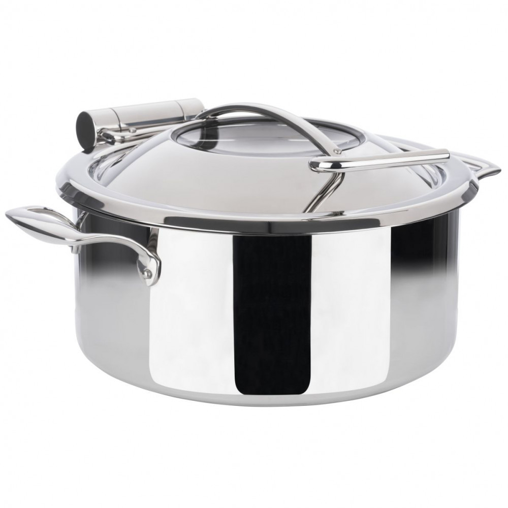 Chafing solid din inox 18/8, cu capac hidraulic detasabil, baza tip sandwich adaptata pentru inductie, vascheta rotunda Inox, Capacitate de 4 litri.