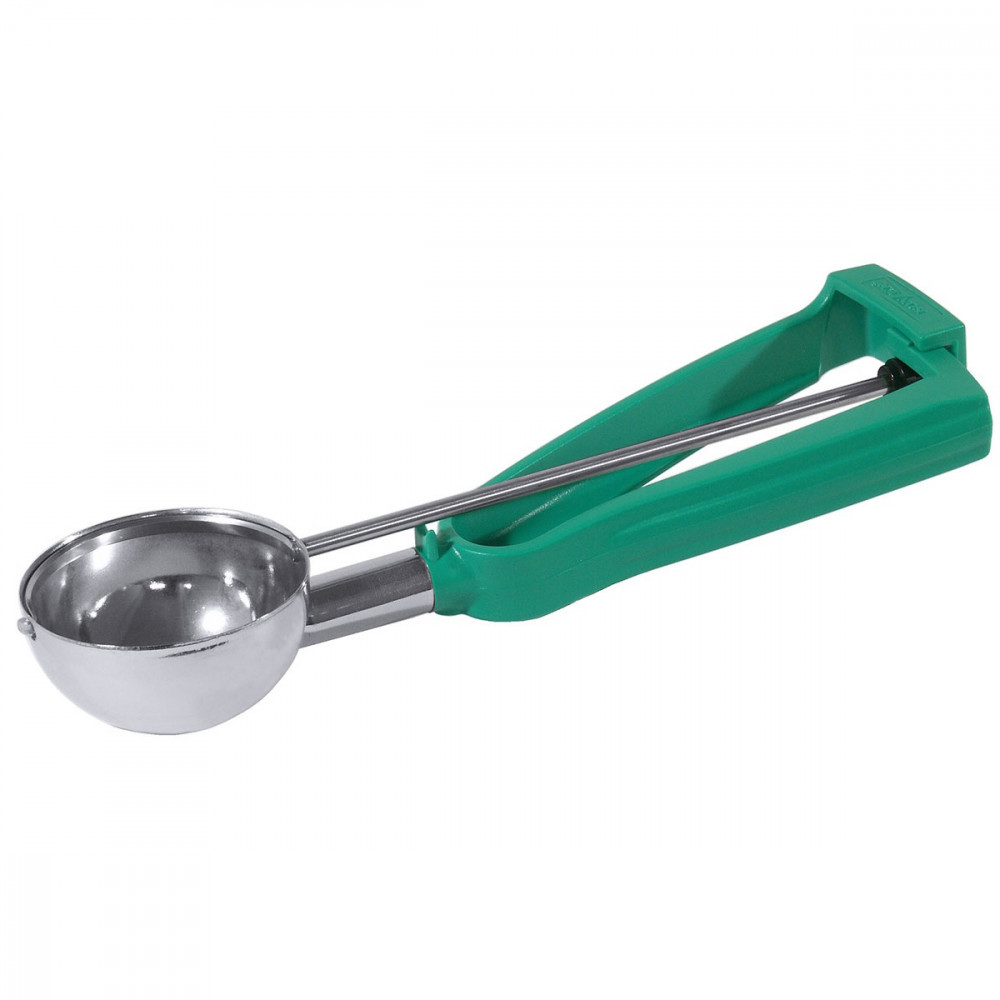 Cupa este din Inox 18/10, iar manerul din poliamida verde. Avand un arc integral, acesta este un produs rezistent, utilizat pentru inghetata, dar foarte util in orice bucatarie pentru o portionare exacata. Fiecare culoare reprezinta o dimensiune, acestea pot fi identificate prin culoarea lor.