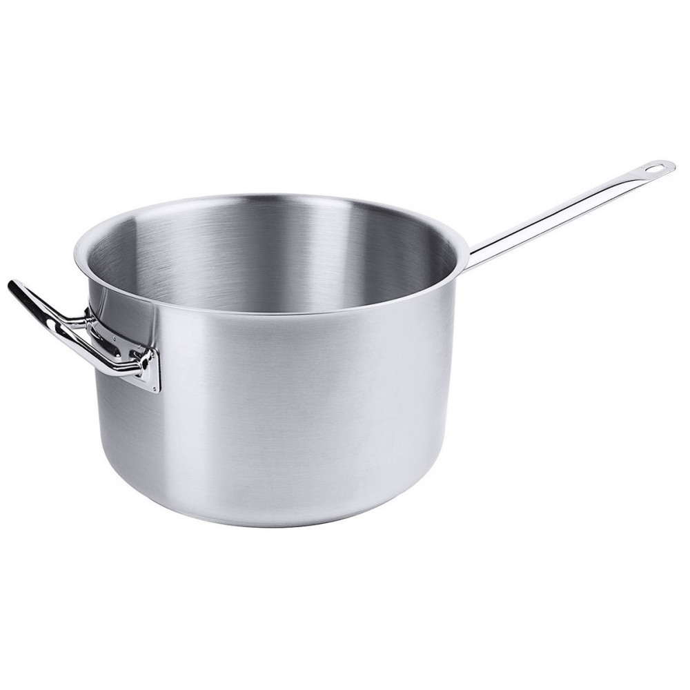 Cratita sos profesionala fara capac din Inox 18/10 cu finisaj satinat, conceputa pentru utilizare intensa in bucatariile din restaurante sau hoteluri, cantine sau catering. Baza formata prin presare Inox / Aluminiu / Inox de 0.7 cm asigura distribuirea uniforma a caldurii pe toata suprafata bazei si de asemenea reduce consumul de energie.