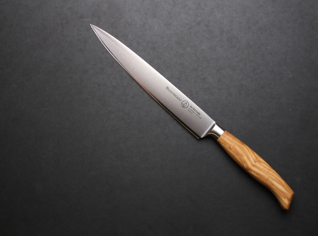 Va veti trezi folosind Messermeister Oliva Luxe 20 cm Slicer pentru toate sarcinile dvs. obisnuite in bucatarie. Cu marginea sa fina, acest cutit in stil traditional este unul dintre cele mai frecvent utilizate cutite in bucatarie si un favorit pentru pregatire, decojire si feliere.