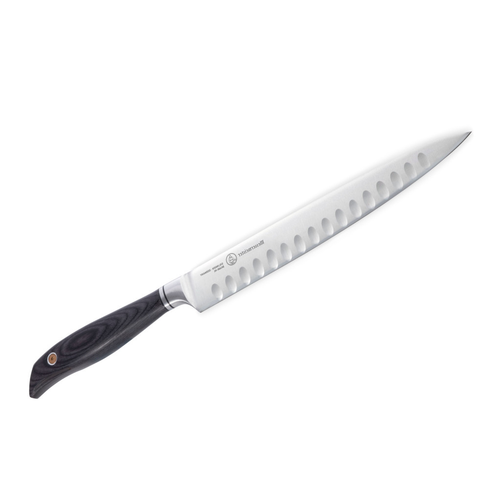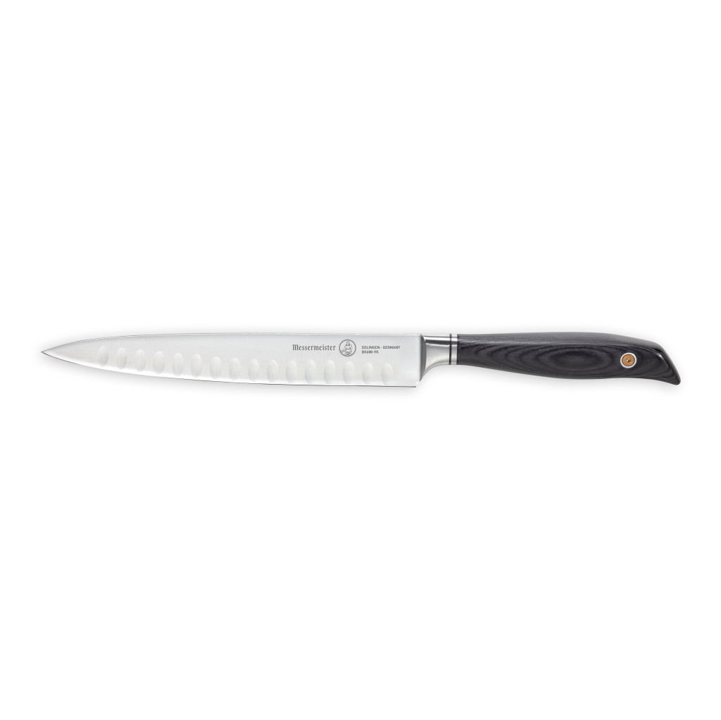 Cutitul kullens Messermeister Blacksmith de feliat, de 23 cm, are o lama ingusta in forma de sulita, cu muchie fina, care este folosita pentru sarcini de feliere mici pana la medii. Acesta separa carnea de os si o taie in portii subtiri de servire. Crestaturile, alveolele, alternante de pe fiecare parte a cutitului reduc rezistenta si previn lipirea preparatelor de lama.