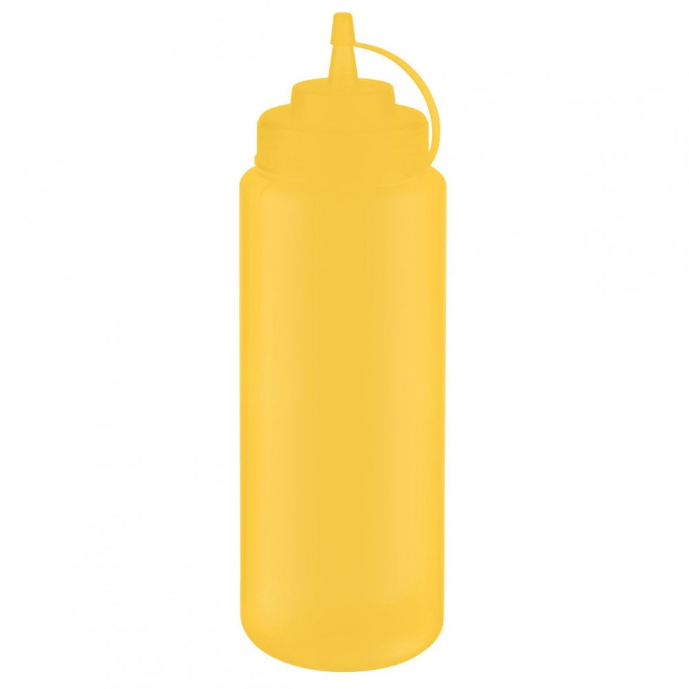 Flacon din polietilena galbena cu capac filetat si dop, avand un varf lung pentru un control mai precis.