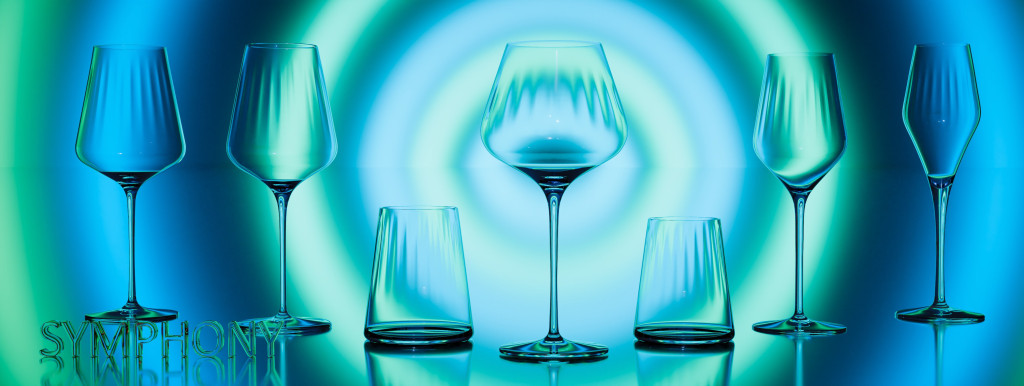 Paharele extravagante din seria Symphony ies in evidenta prin contururile lor clare. Ei impresioneaza prin designul lor strict functional, dar si puternic accentuat. Peretii extrem de subtiri ai paharelor sunt traversati de texturi verticale fine, care nu numai ca au un aspect atragator, dar maresc si suprafata interioara a paharului, permitand dezvoltarea libera a aromelor.