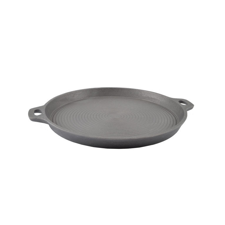 Aceasta placa din fonta are marimea potrivita astfel incat poate fi folosit pe sursa de caldura traditionala cu gaz fara probleme si datorita peretelui scazut, avem acces usor la prajirea feliilor de carne.