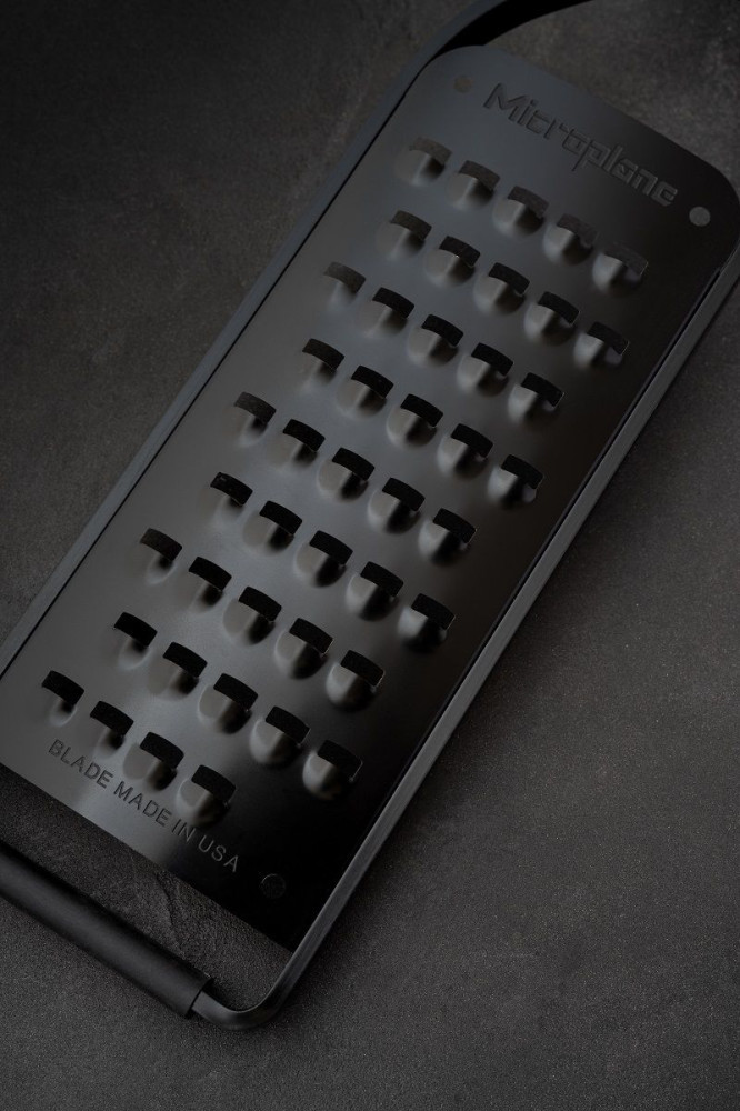 MICROPLANE utilizeaza un proces chimic numit fotogravura care defineste si ascute marginea fiecarui dinte de pe razatoare. Rezultatul este un dinte mult mai ascutit si lame din otel inoxidabil ultra-ascutite si de lunga durata, oferind un rezultat mai precis cu mult mai putin efort.