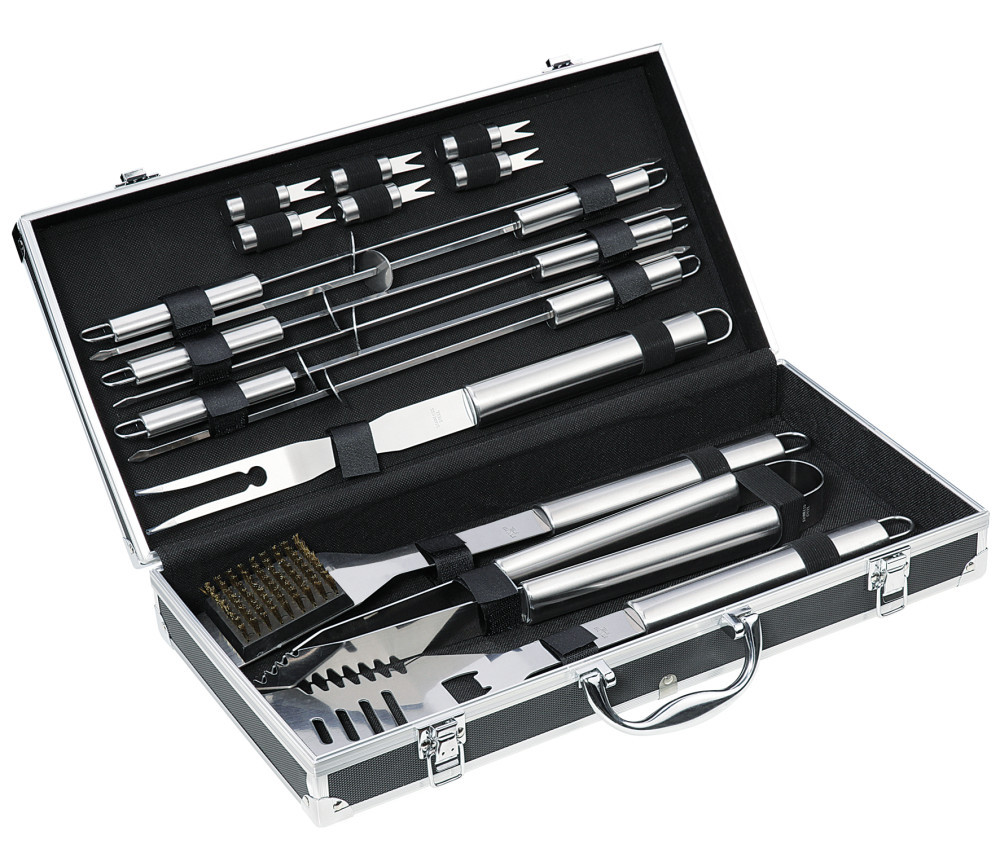 Set 16 piese de accesorii pentru gratar, carcasa din aluminiu negru, set cadou ideal.