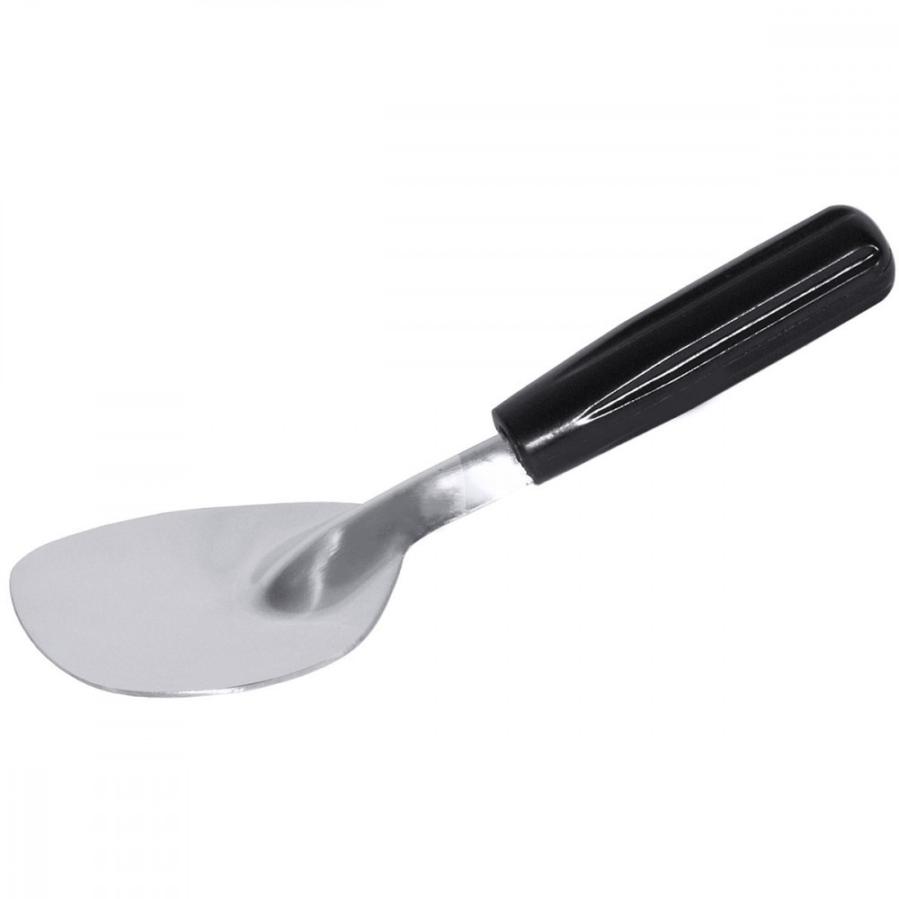 Spatula profesionala din inox pentru inghetata, cu maner ergonomic din material plastic negru.
