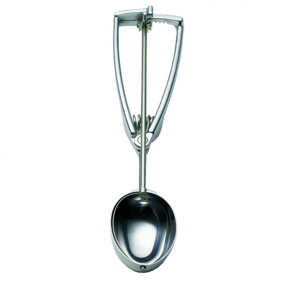 Cupa este din Inox 18/10 si are forma ovala, iar manerul din alama solida cromata. O durabilitate indelungata este garantata datorita materialelor de inalta calitate. Ele sunt concepute pentru inghetata, dar sunt foarte utile in orice bucatarie, si pentru o portionare exacta.