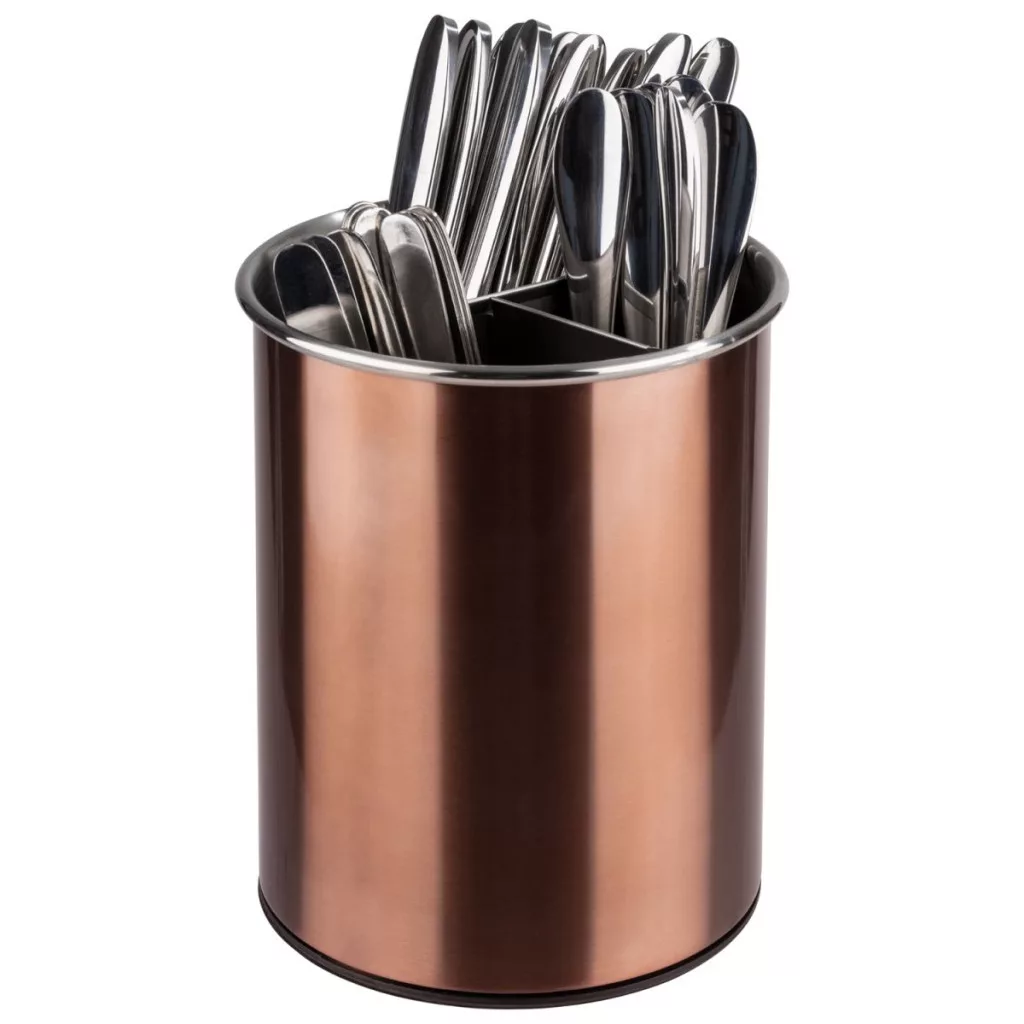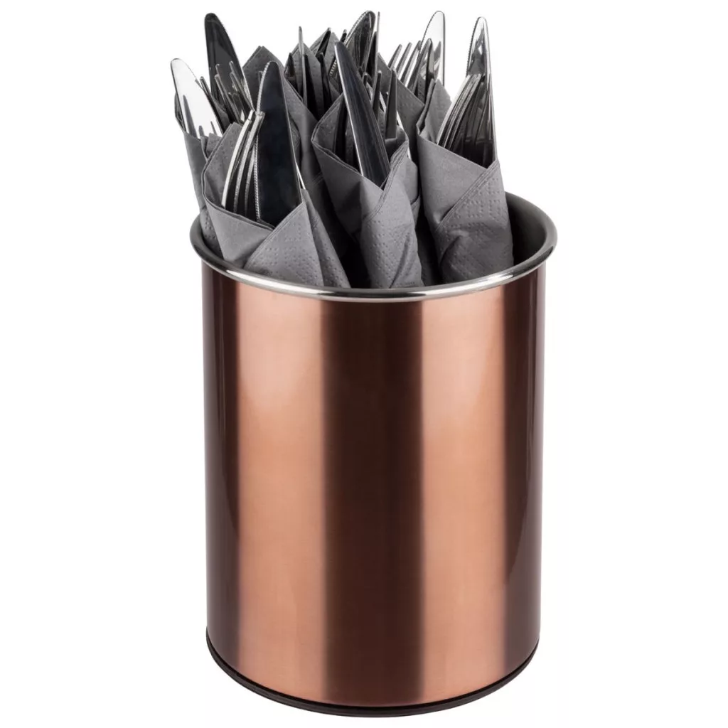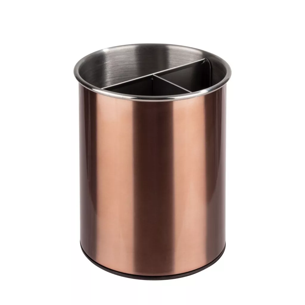 Acest suport de tacamuri este o solutie ideala pentru prezentarea tacamurilor pe masa atat pentru clientii localurilor cat si pentru musafirii de acasa. Suportul este inalt de 16.5cm, are diametrul de 13cm si are 3 compartimente iar baza lui este din silicon si polipropilen cea ce impiedica zgarierea mobilei pe care este asezata.