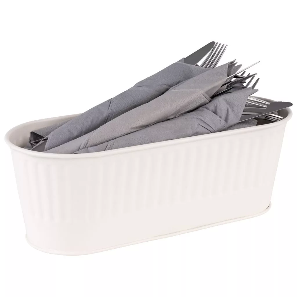 Acest suport de tacamuri este o solutie ideala pentru prezentarea tacamurilor pe masa atat pentru clientii localurilor cat si pentru musafirii de acasa. Suportul in forma de cos este inalt de 10cm, are lungimea de 29.5cm, latimea de 12cm iar volumul lui este de 2 litrii.