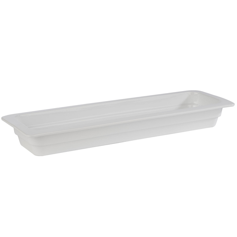 Tava din portelan termorezistent GN 2/4, cu o intaltime de 6 cm si un volum de 3.0 litri, culoarea alba.